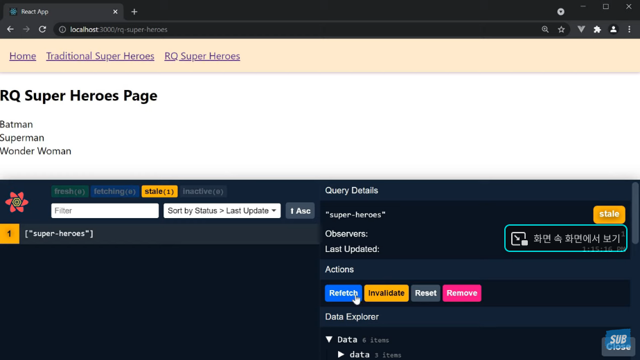 캐시 메모리에 저장된 데이터가 cachTime이 지난 이후에 delete가 된다는 사실도 기억하자. 그렇기에 데이터가 삭제된 이후에는 loading이 발생한다.