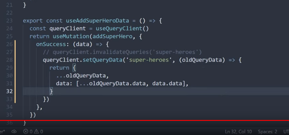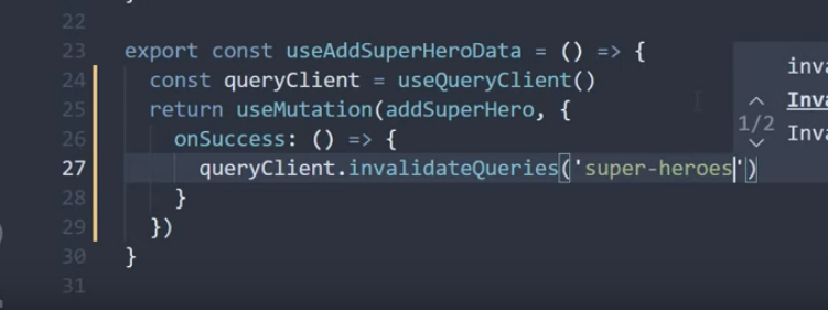 성공 시 invalidateQueryies로 값을 버려버린다.(무효화시킨다)