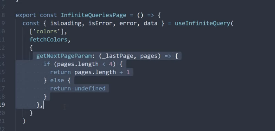 const { isLodading, data isError, error, isFetching, refetch } = useQuery(