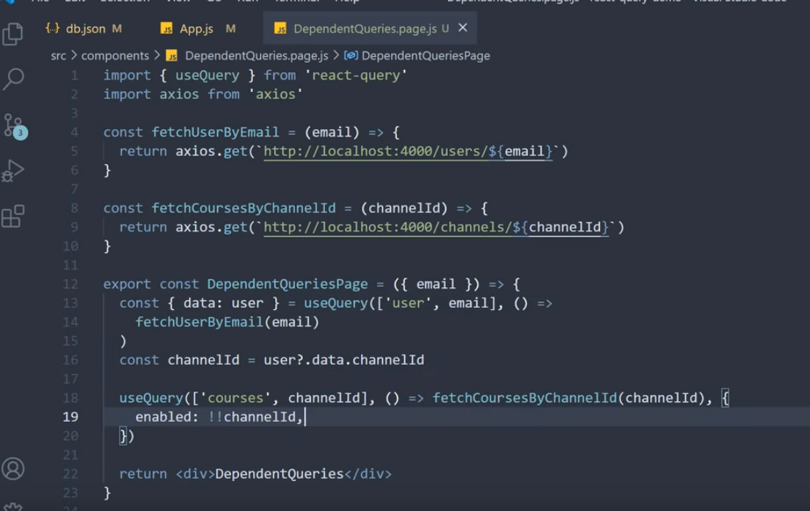 channelId가 의존 상태(user를 호출받은 다음 id값이 생겨서 의존 관계)이므로 있는 경우에 가져오려면, enabled 옵션을 사용한다.