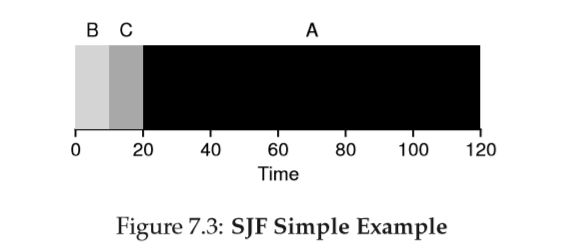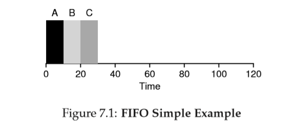 Example: Imagine three jobs(A,B,C) arrives in the system at roughly the same time.