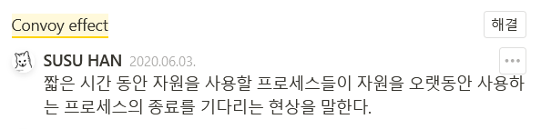Convoy effect: a number of relatively-short potential consumers of a resource get queued behind a heavyweight resource consumer.