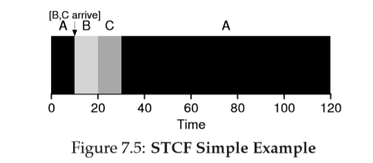 작업의 길이를 미리 알고 있고, 작업이 오직 CPU만 사용하며 평가 기준이 Turnaround Time하나라면 STCF는 매우 훌륭한 정책이다.