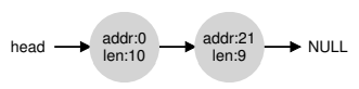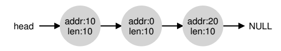 One entry describes the first 10byte free segment (bytes 0-9), and one entry describes the other free segment (bytes 20-29)
