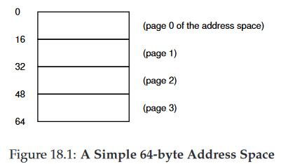 총 크기 64bite, 각 page는 16bite 페이지로 구성된 작은 주소 공간을 통해 이해해보자.