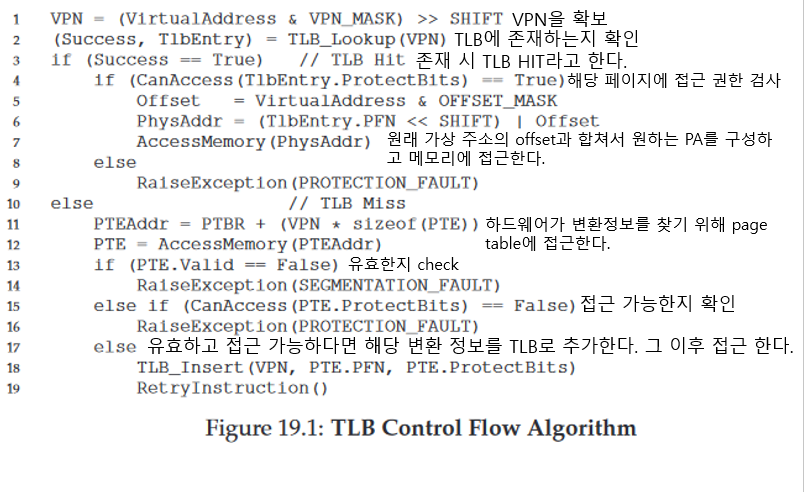 - 하드웨어는 먼저 TLB에 원하는 정보가 있는지 확인한다.